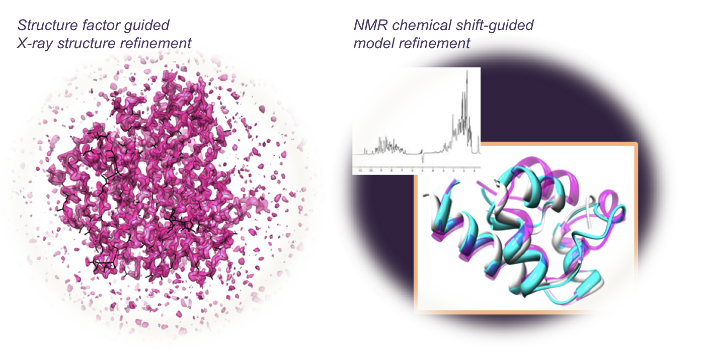 For example, structure factors collected by X-ray crystallographers can be used to guide structure prediction even when phase information is not available and homology models are not accurate enough for molecular replacement. In addition, chemical shift data collected from NMR spectroscopy can assist refinement of template-based models. We are studying how to interpret and combine various experimental data with GalaxyTBM.